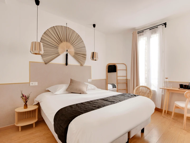 Let yourself be charmed by the cozy rooms of Hôtel Maison Urbaine, a three-star boutique hotel ideally located in the 19th arrondissement of Paris, just steps from the Bassin de la Villette and Crimée metro. Each room, from single to superior quadruple, is designed to offer comfort, tranquility, and a pleasant stay in the heart of Paris 19, perfect for tourist getaways or business trips.
