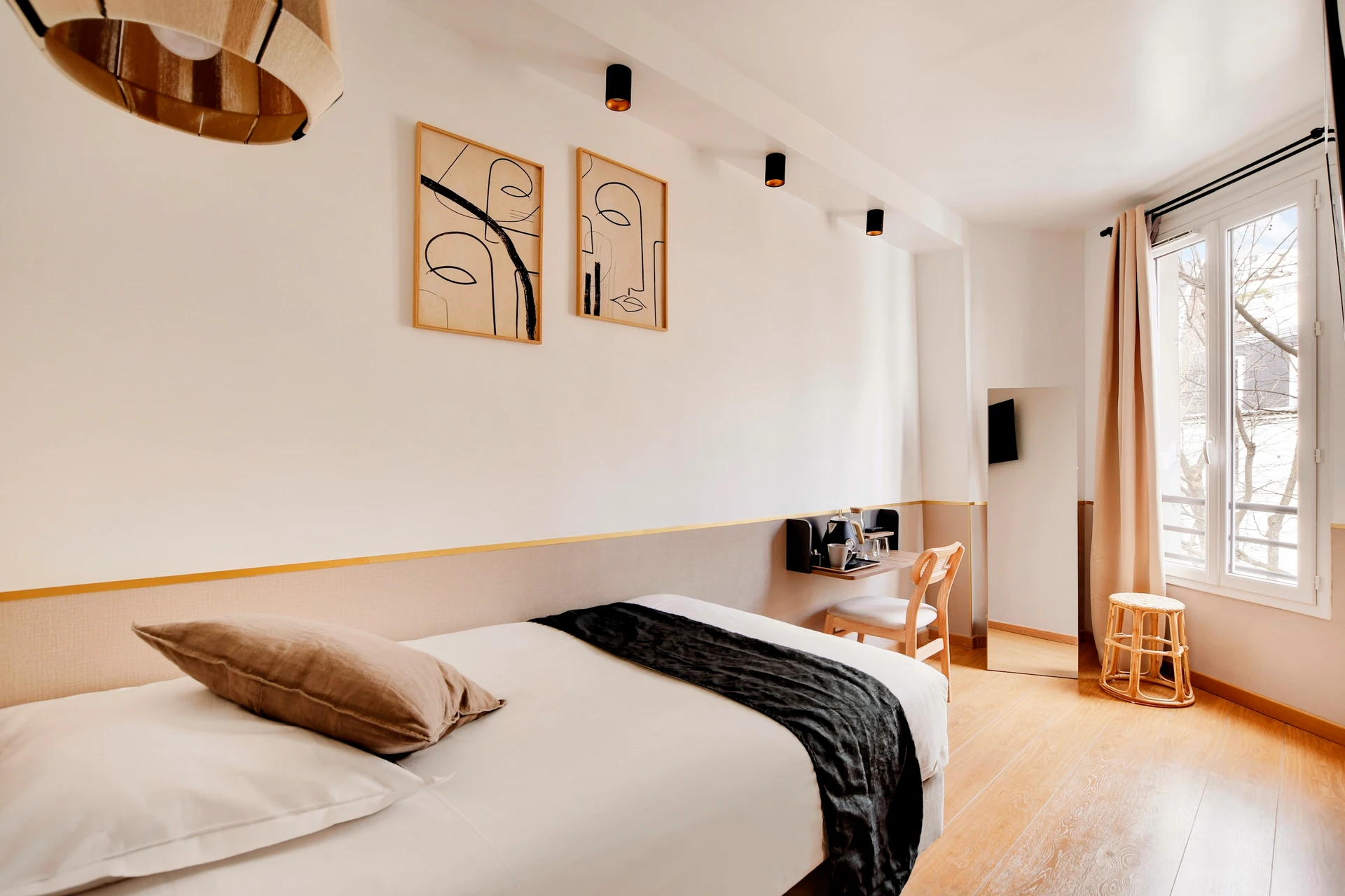 Discover the unique atmosphere of Hôtel Maison Urbaine, a boutique hotel located in the 19th arrondissement of Paris, just steps away from La Villette. This gallery highlights the welcoming style of the common areas and the comfort designed to provide a pleasant and relaxing stay in Paris 19.